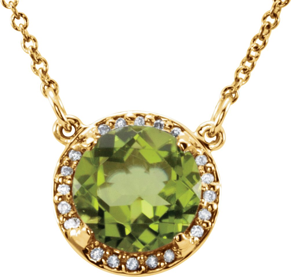 14K Yellow 6 mm Round Peridot and .04 CTW Diamond 16 inch Necklace
