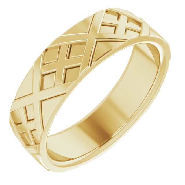 14K Yellow 6.4 mm X Pattern Design Band Size 10.5 Ref 12750643