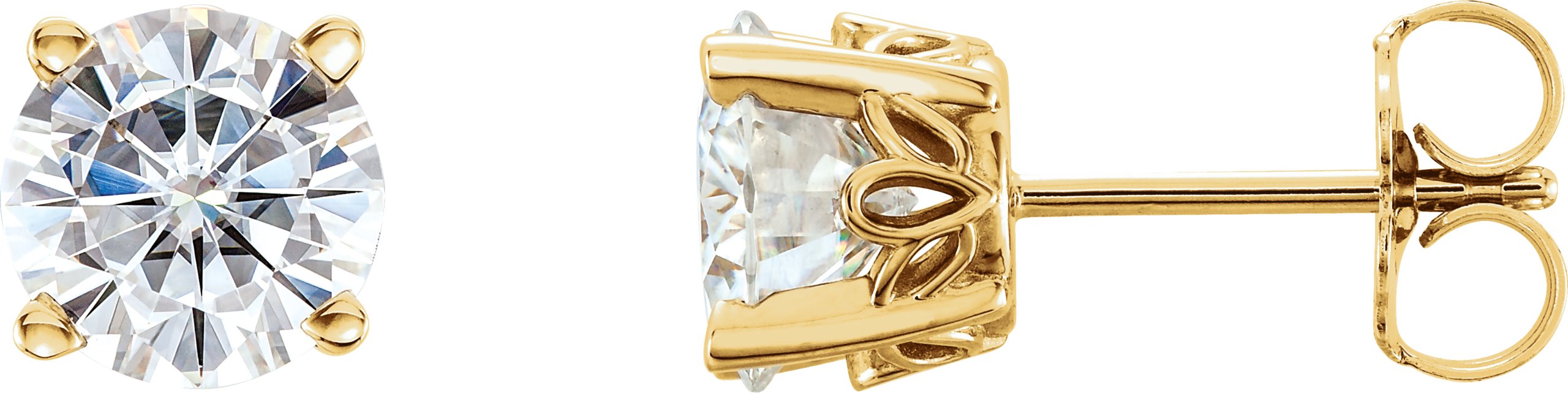 14K Yellow 6.5 mm Round Forever One™ Moissanite Earrings