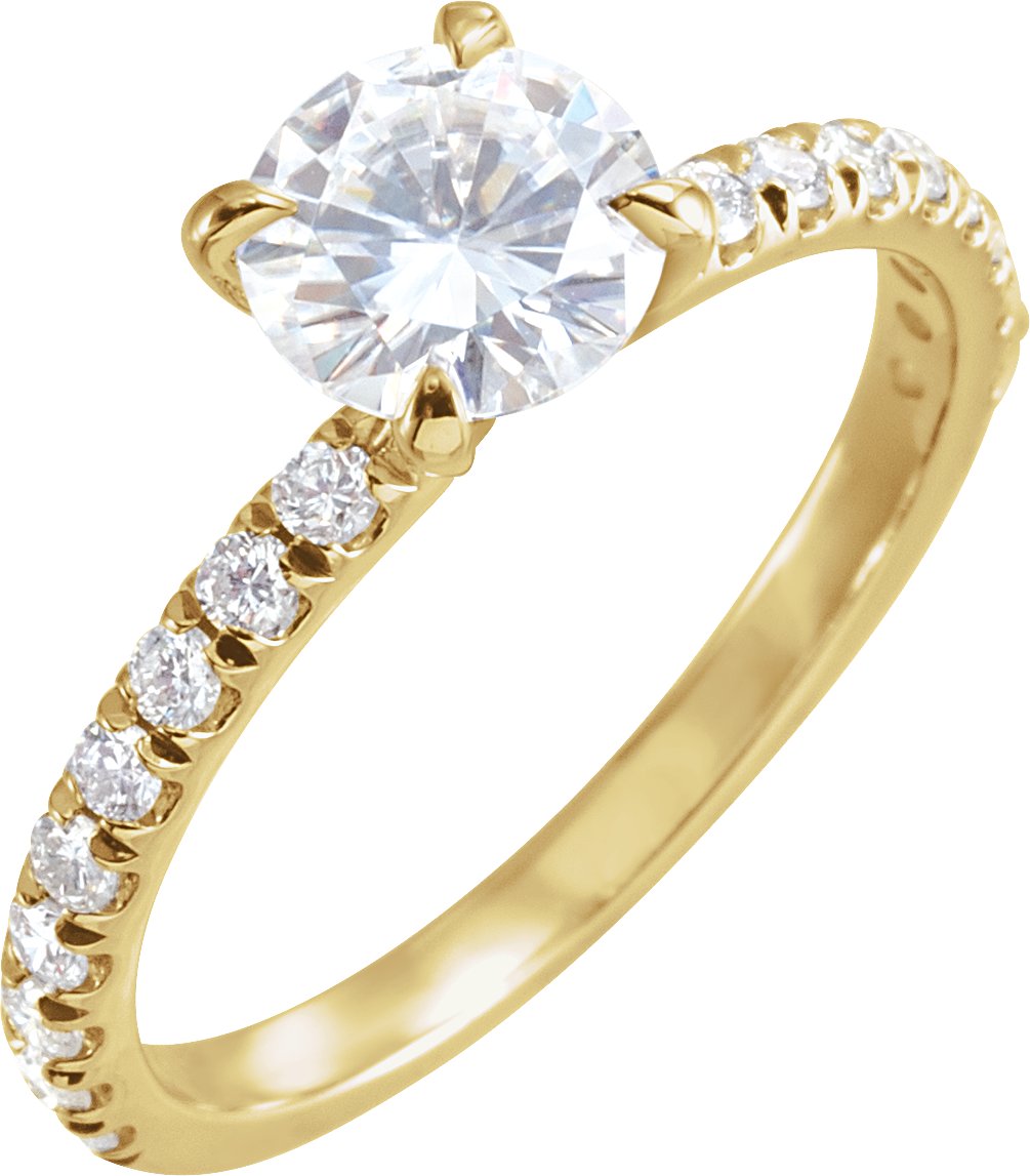 14K Yellow 6.5 mm Round Forever One™ Moissanite & 1/3 CTW Diamond Engagement Ring