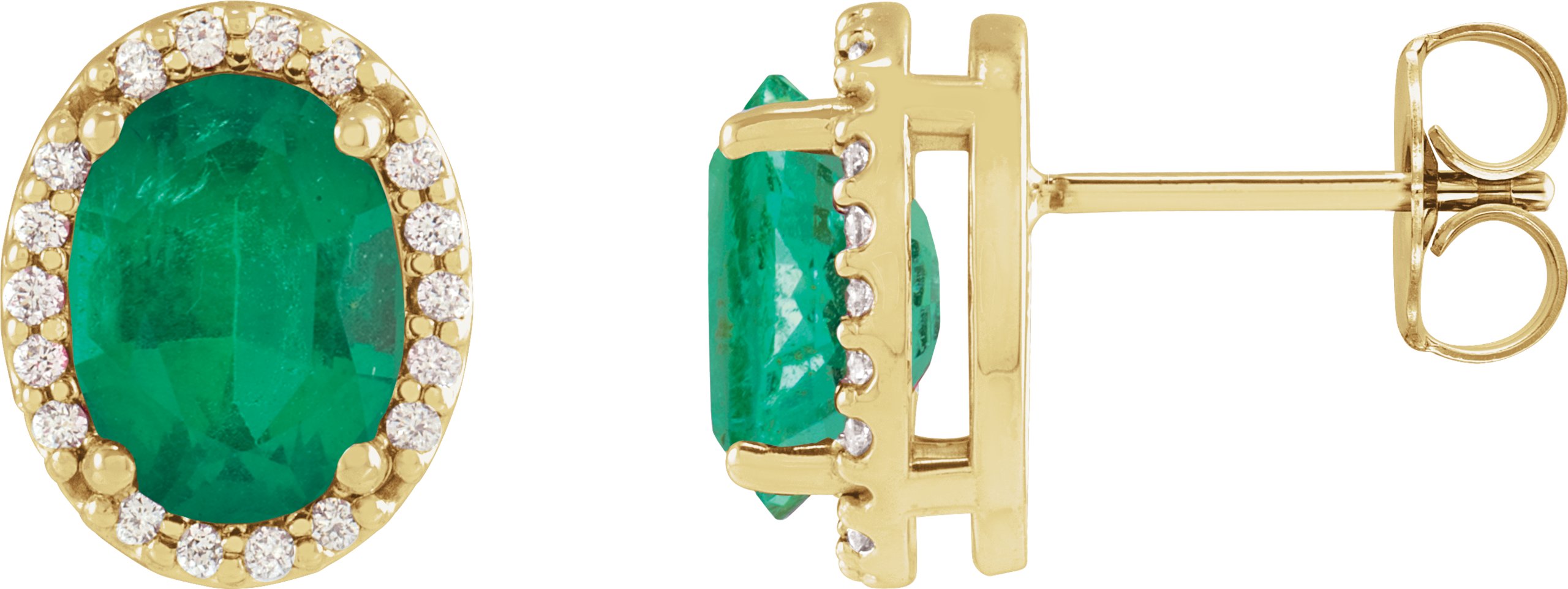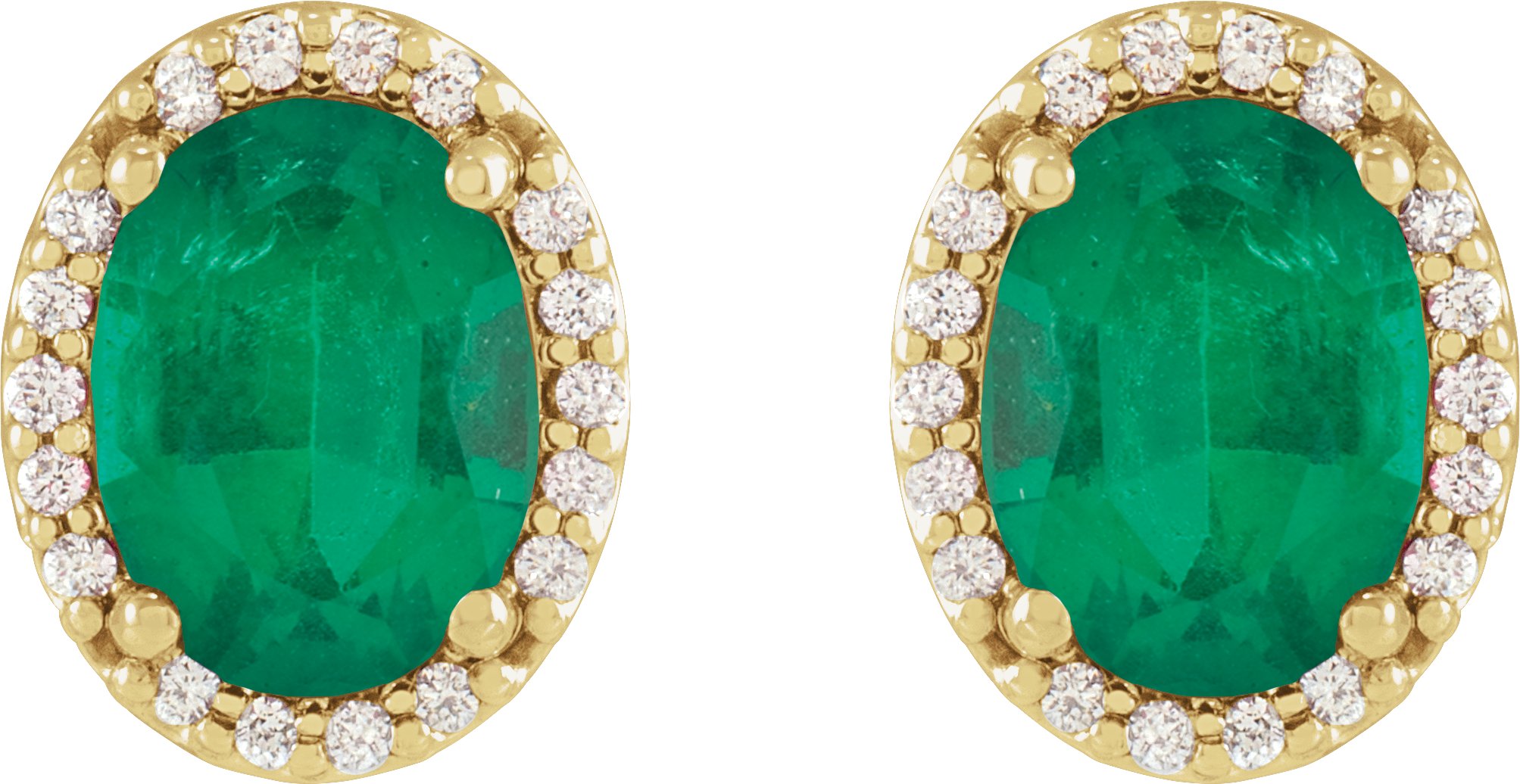 14K Yellow 6x4 mm Lab Grown Emerald and .06 CTW Natural Diamond Halo Style Earring Ref 19705980