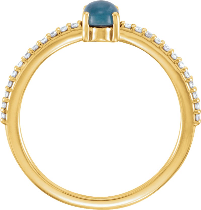 14K Yellow 6x4 mm Oval Cabochon London Blue Topaz & 1/8 CTW Diamond Ring