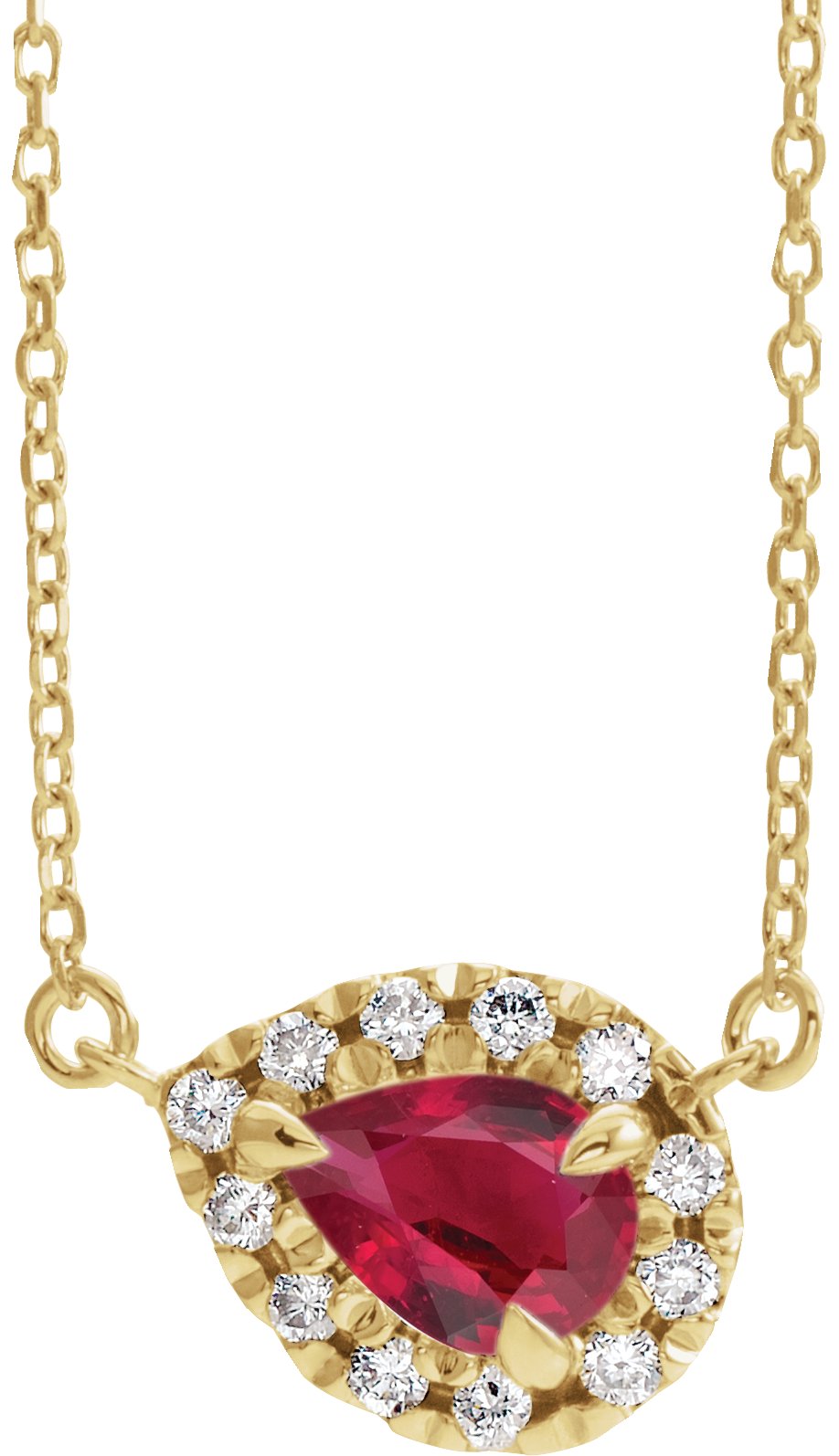 14K Yellow 6x4 mm Pear Chatham Lab Created Ruby & 1/6 CTW Diamond 16" Necklace Ref. 16213226