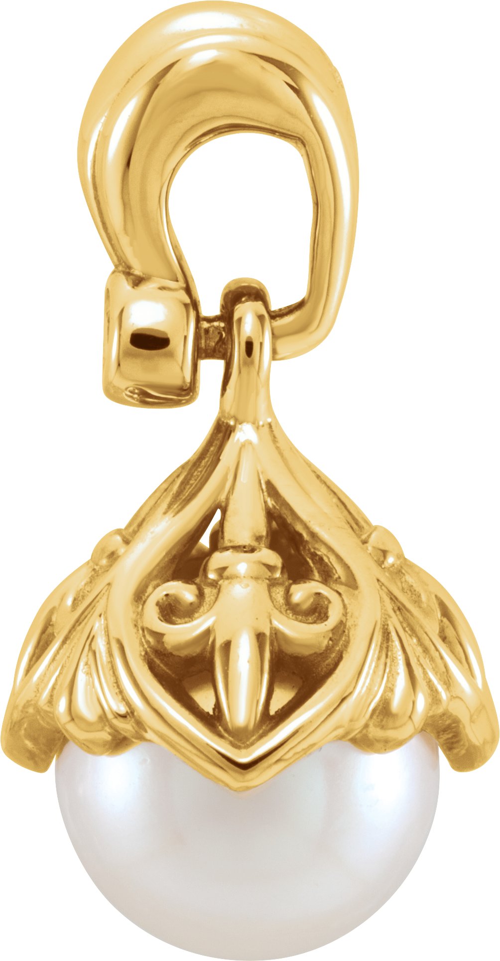 14K Yellow 7 7.5 mm Freshwater Cultured Pearl & .02 CTW Diamond Fleur de lis Pendant