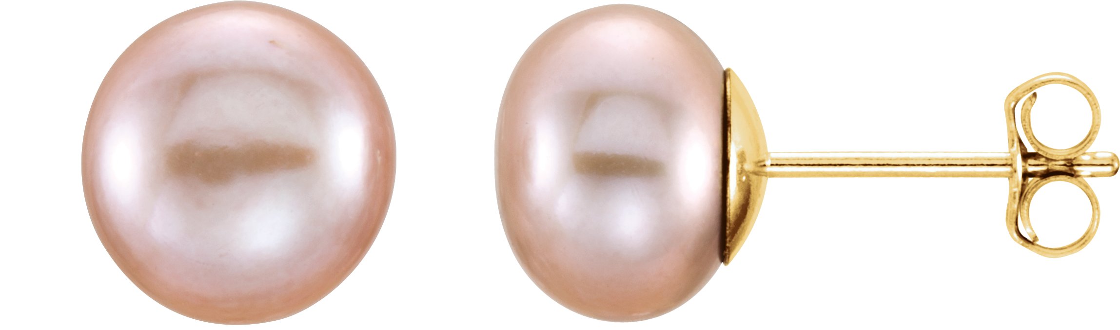 14K Yellow 7 8 mm Pink Freshwater Cultured Pearl Earrings