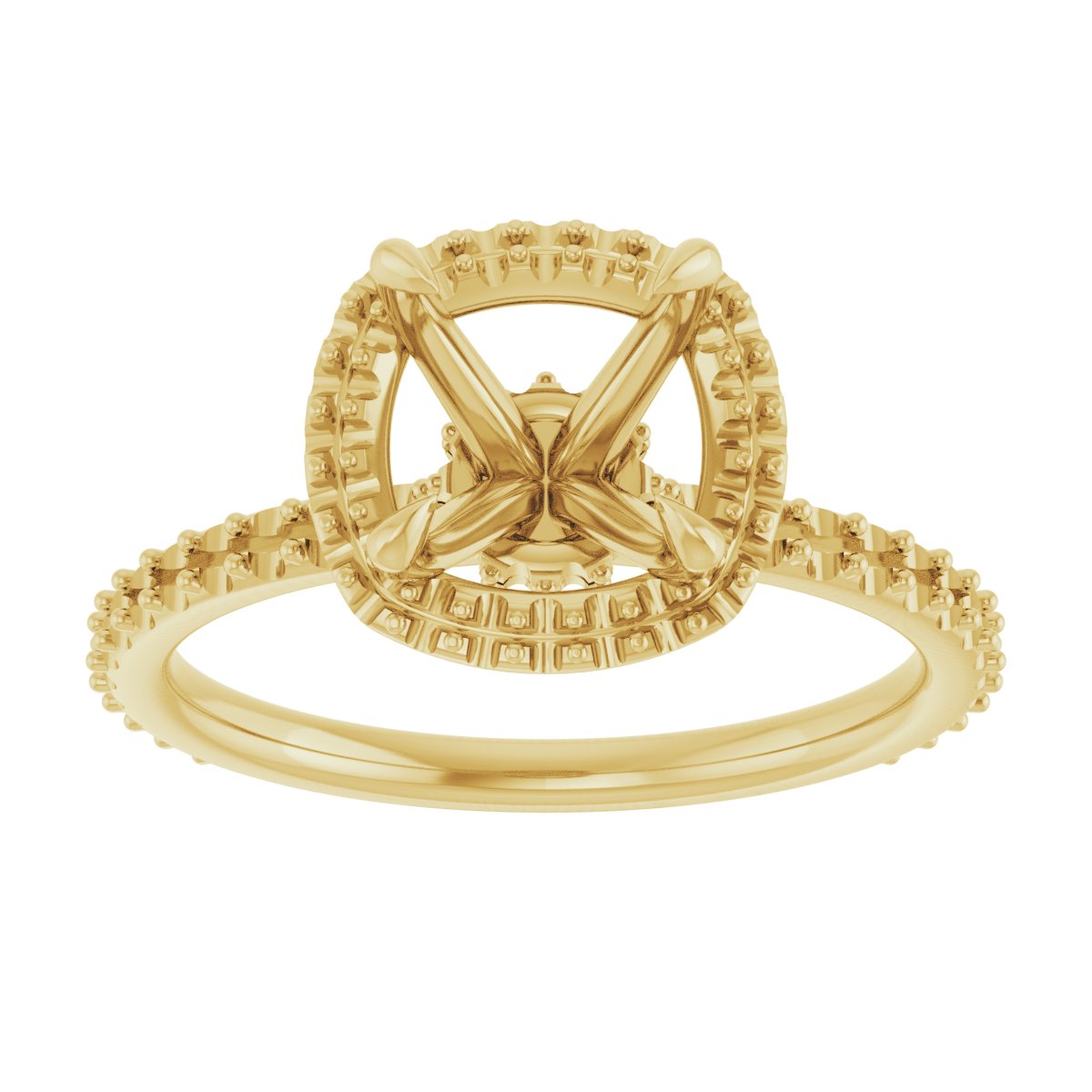 14K Yellow 7 mm Cushion Forever One™ Moissanite & 1/3 CTW Diamond Engagement Ring