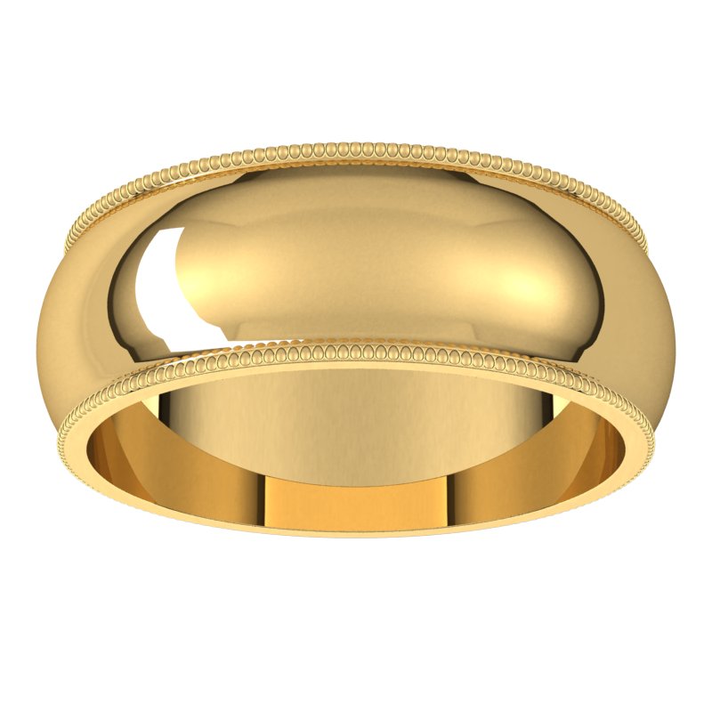14K Yellow 7 mm Milgrain Half Round Band Size 10.5