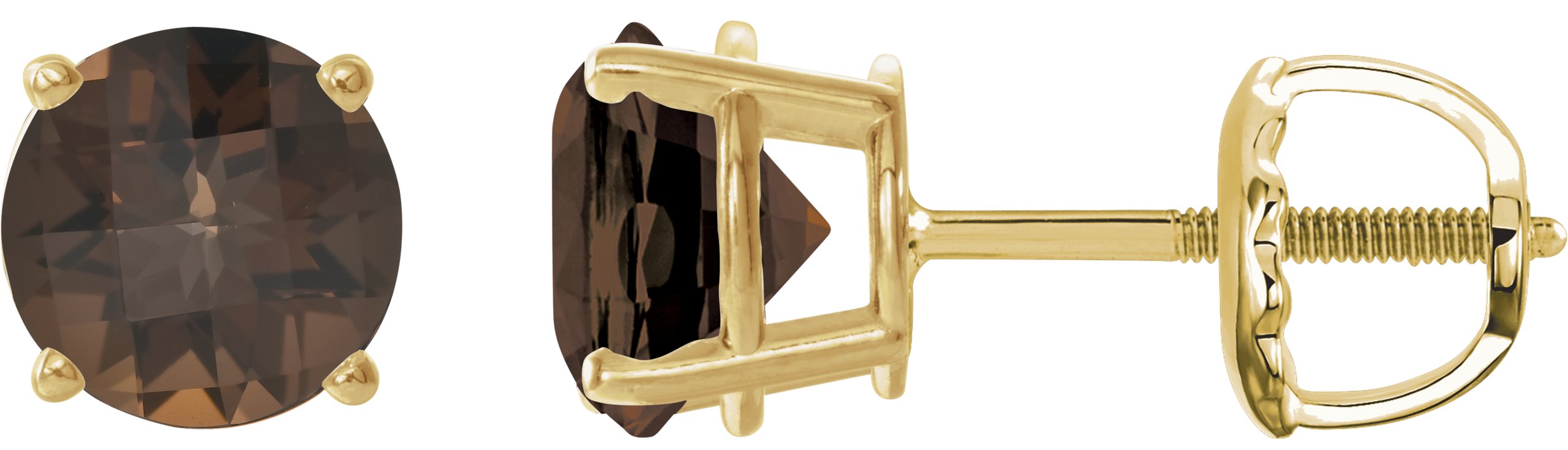 14K Yellow 7 mm Natural Smoky Quartz Stud Earrings