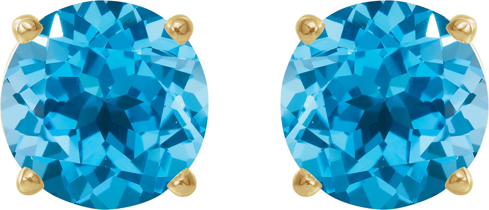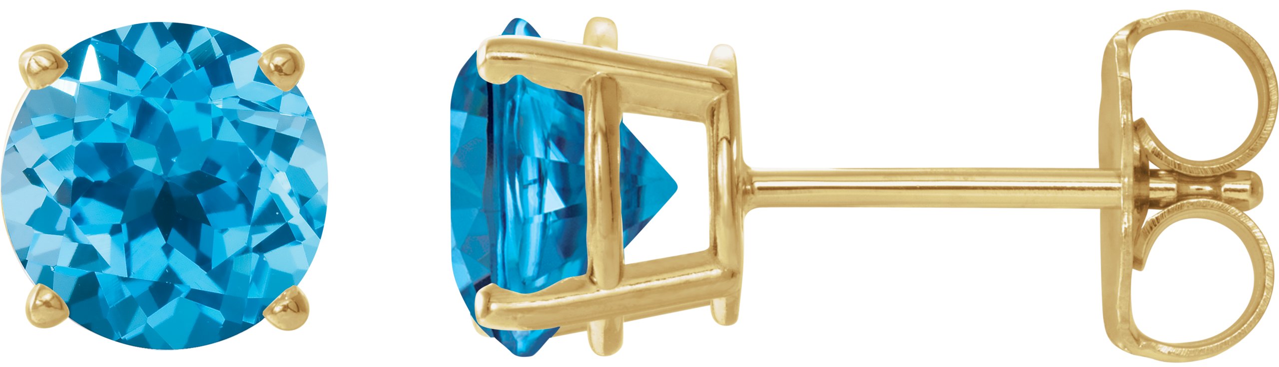 14K Yellow 7 mm Natural Swiss Blue Topaz Stud Earrings