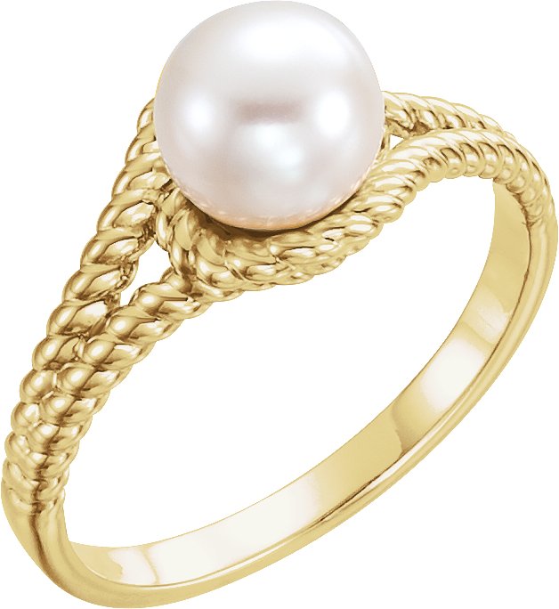 14K Yellow 7 mm White Freshwater Pearl Rope Ring