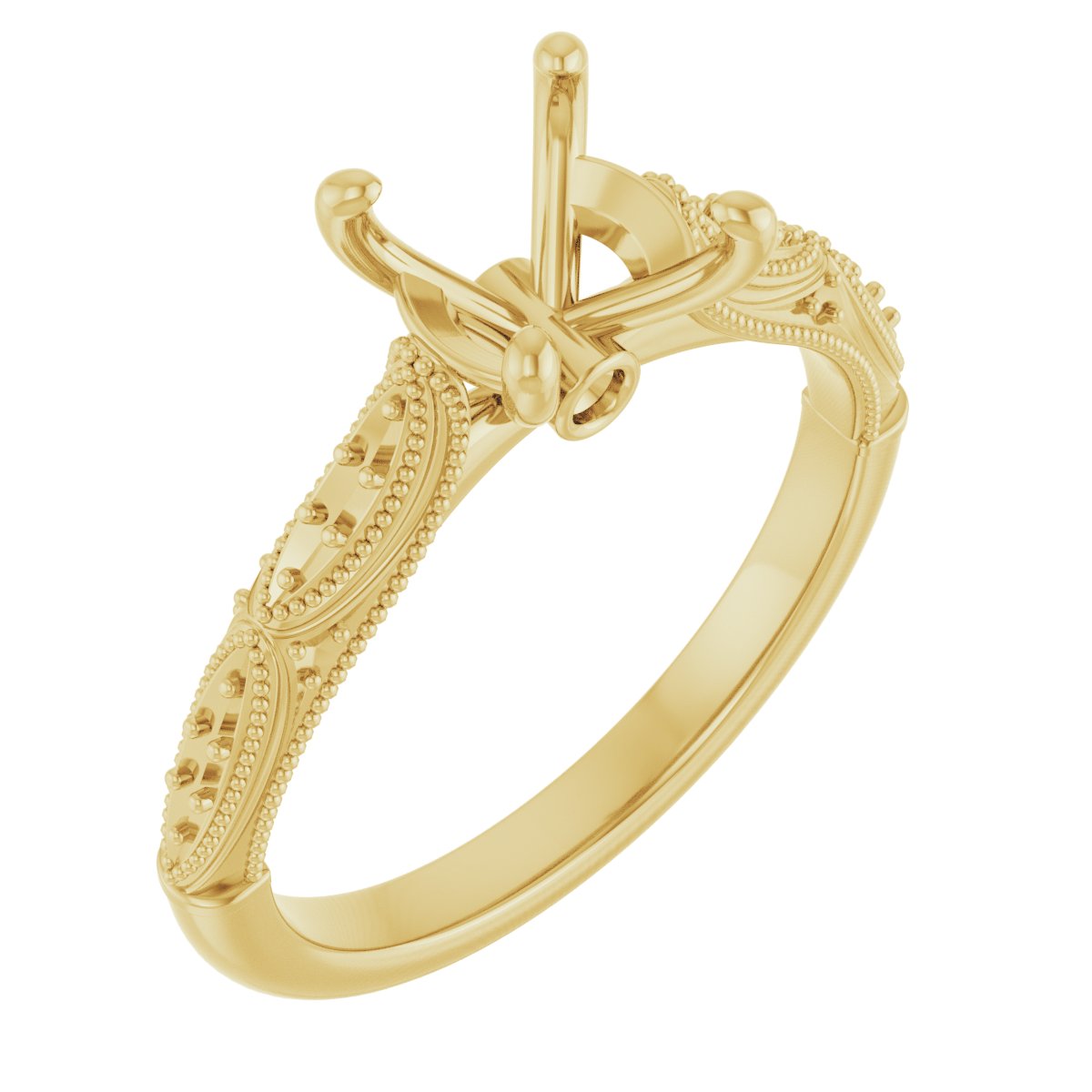14K Yellow 7.5 mm Round Forever One™ Moissanite & 1/8 CTW Diamond Engagement Ring