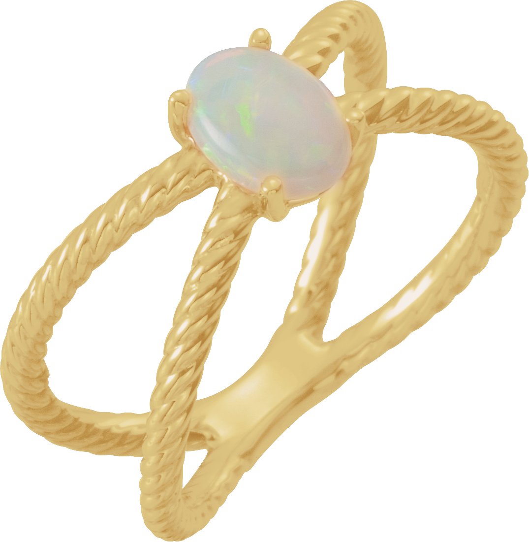 14K Yellow 7x5 mm Opal Criss Cross Rope Ring