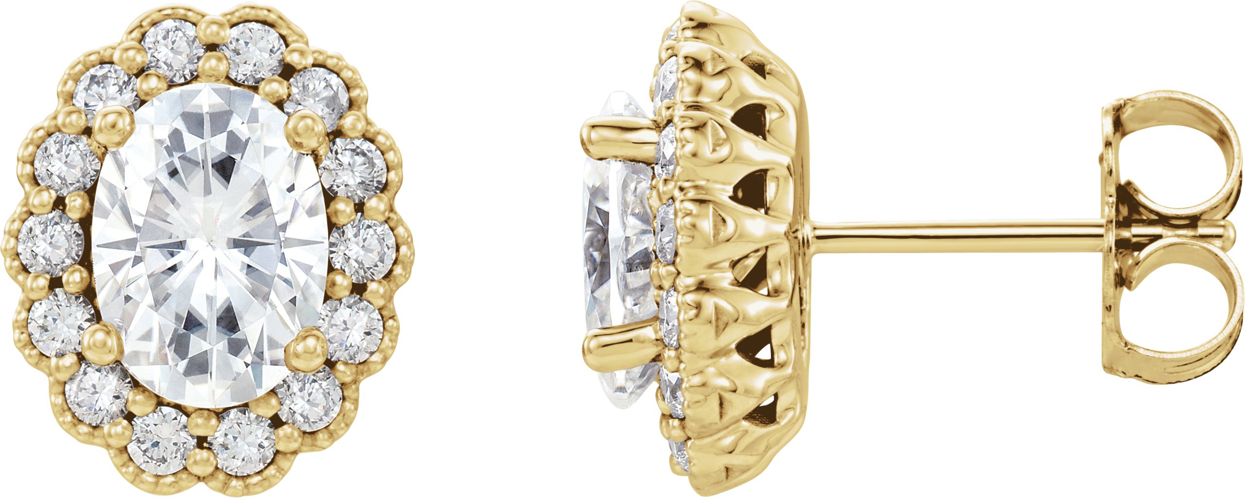 14K Yellow 7x5 mm Oval Forever One™ Moissanite & 3/8 CTW Diamond Earrings
