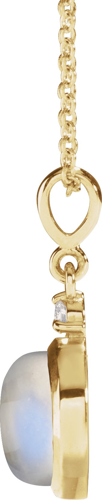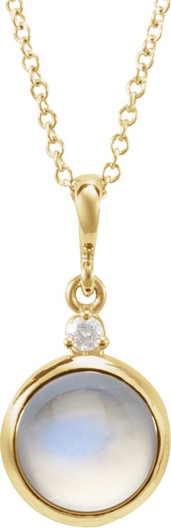 14K Yellow 8 mm Natural Rainbow Moonstone & .03 CT Natural Diamond Cabochon 16-18" Necklace