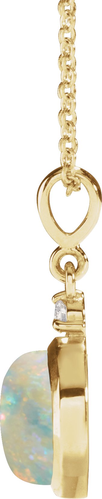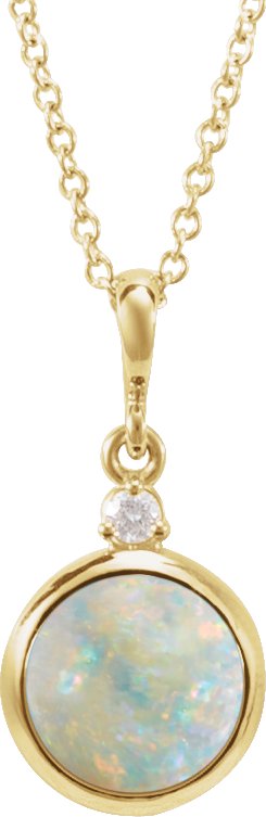14K Yellow 8 mm Natural White Opal & .03 CT Natural Diamond Cabochon 16-18" Necklace