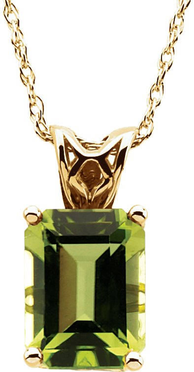 14K Yellow 8x6 mm Emerald Peridot Solitaire 18 inch Necklace