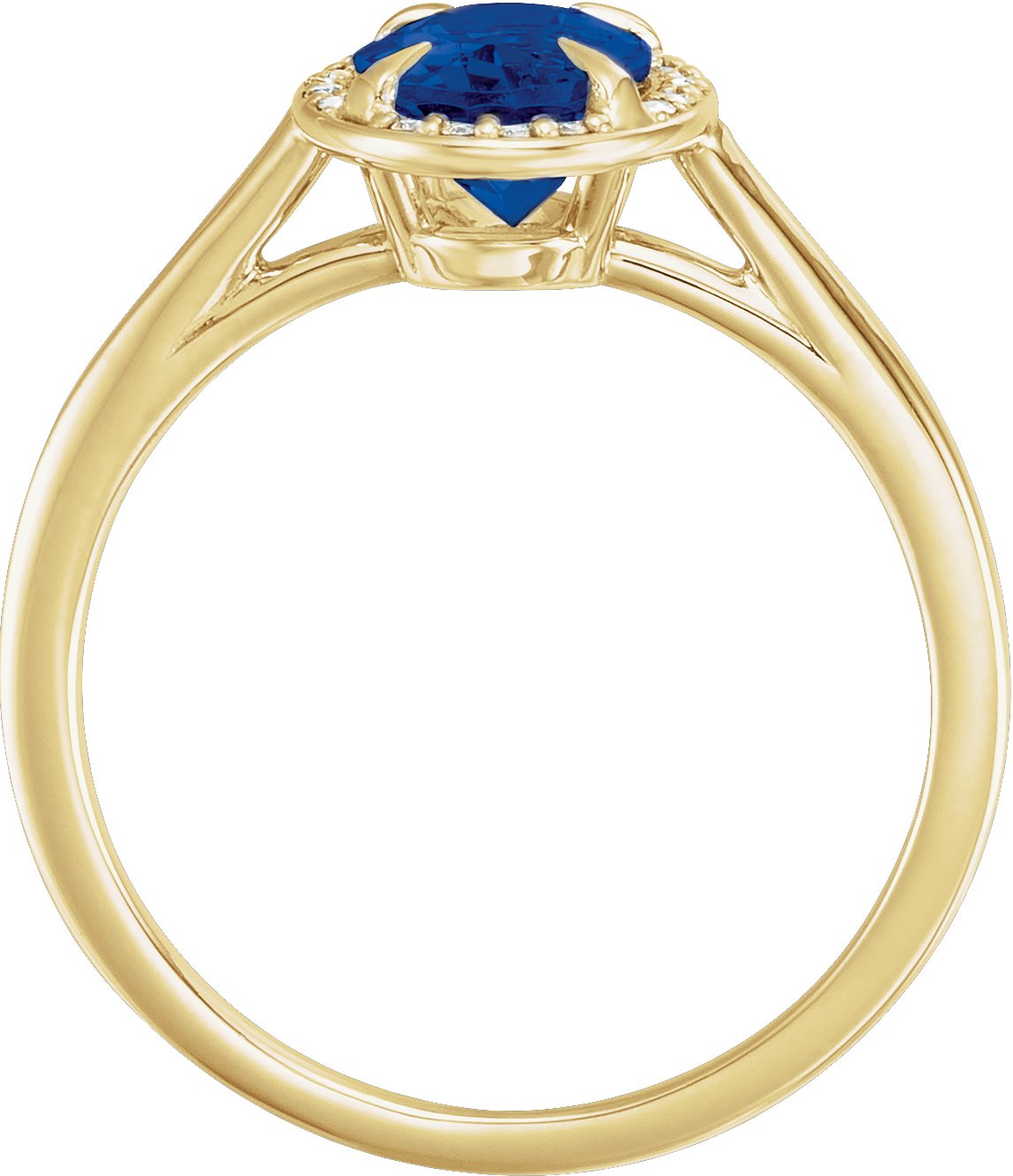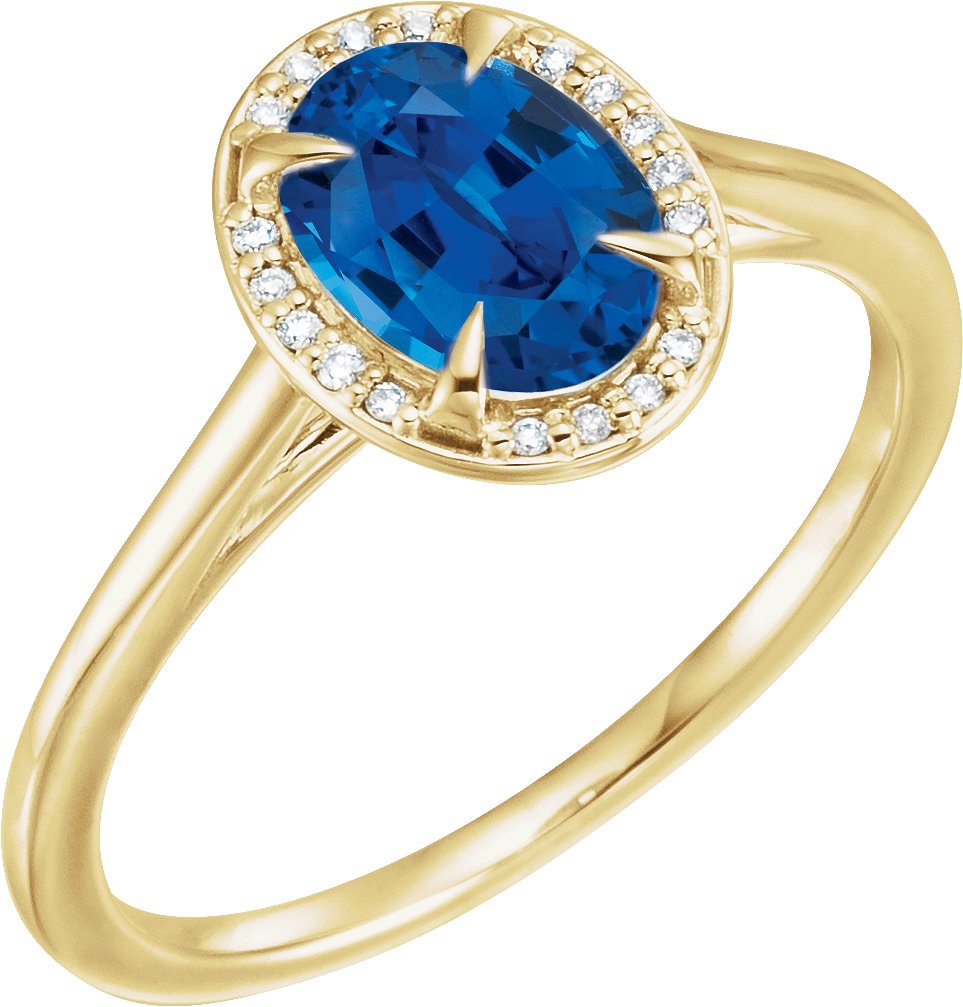 14K Yellow 8x6 mm Oval Chatham Lab Created Blue Sapphire & .06 CTW Diamond Ring