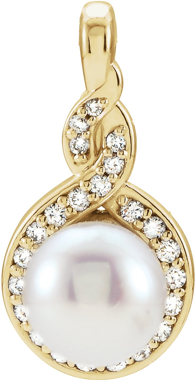 14K Yellow Akoya Cultured Pearl & 1/10 CTW Diamond Pendant