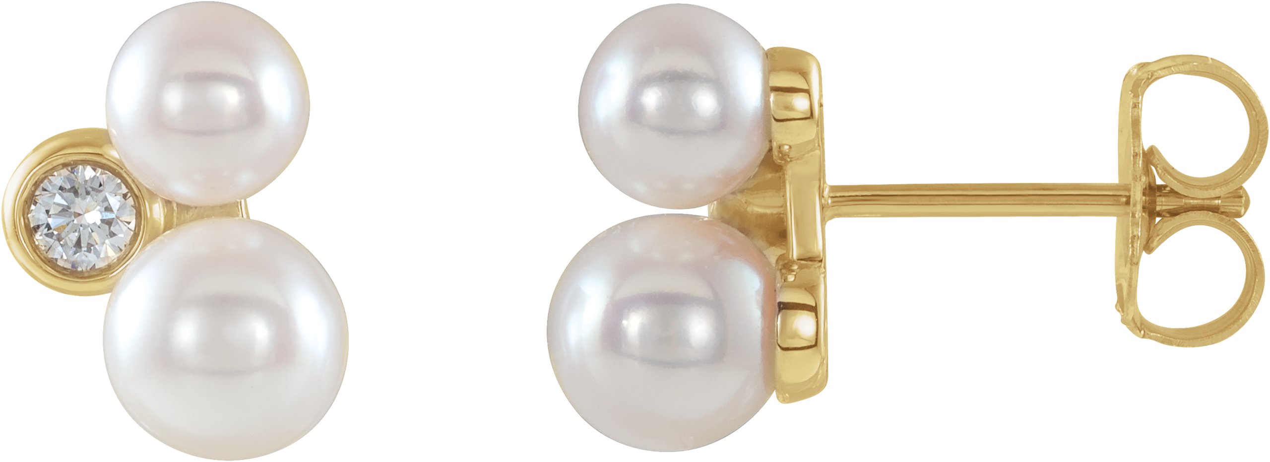 14K Yellow Akoya Cultured Pearl & 1/8 CTW Diamond Earrings