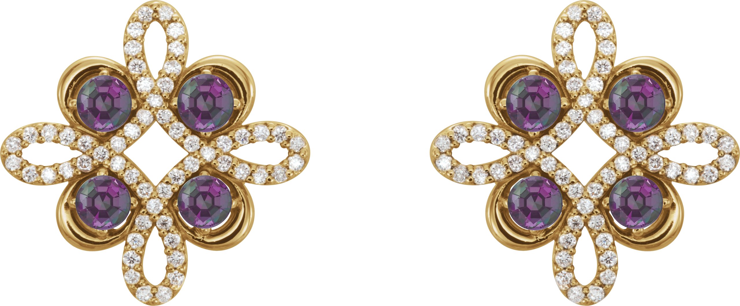 14K Yellow Alexandrite and .25 CTW Diamond Earrings