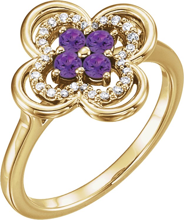 Description: Genuine Amethyst And 1/10 CTW Dia Clover Ring
