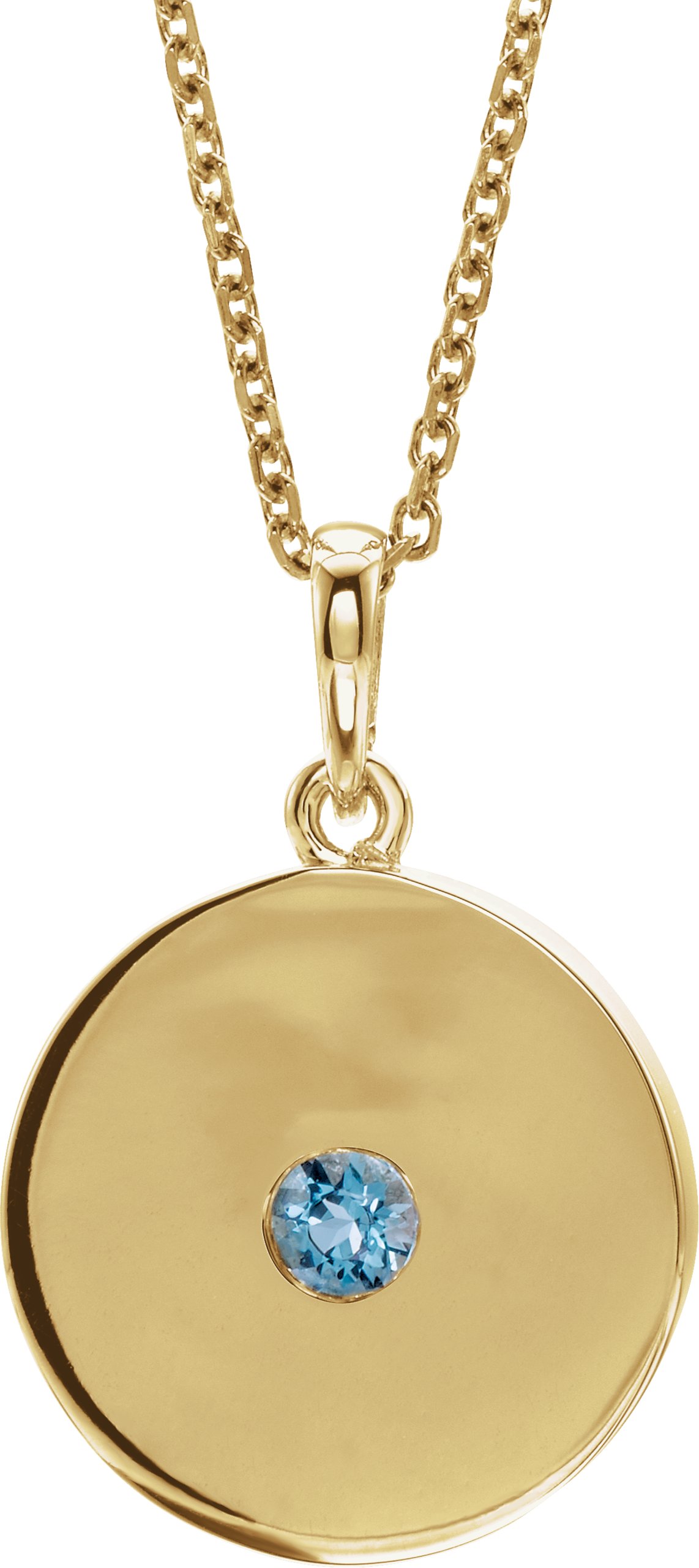 Description: Genuine Aquamarine Disc Pendant Necklace