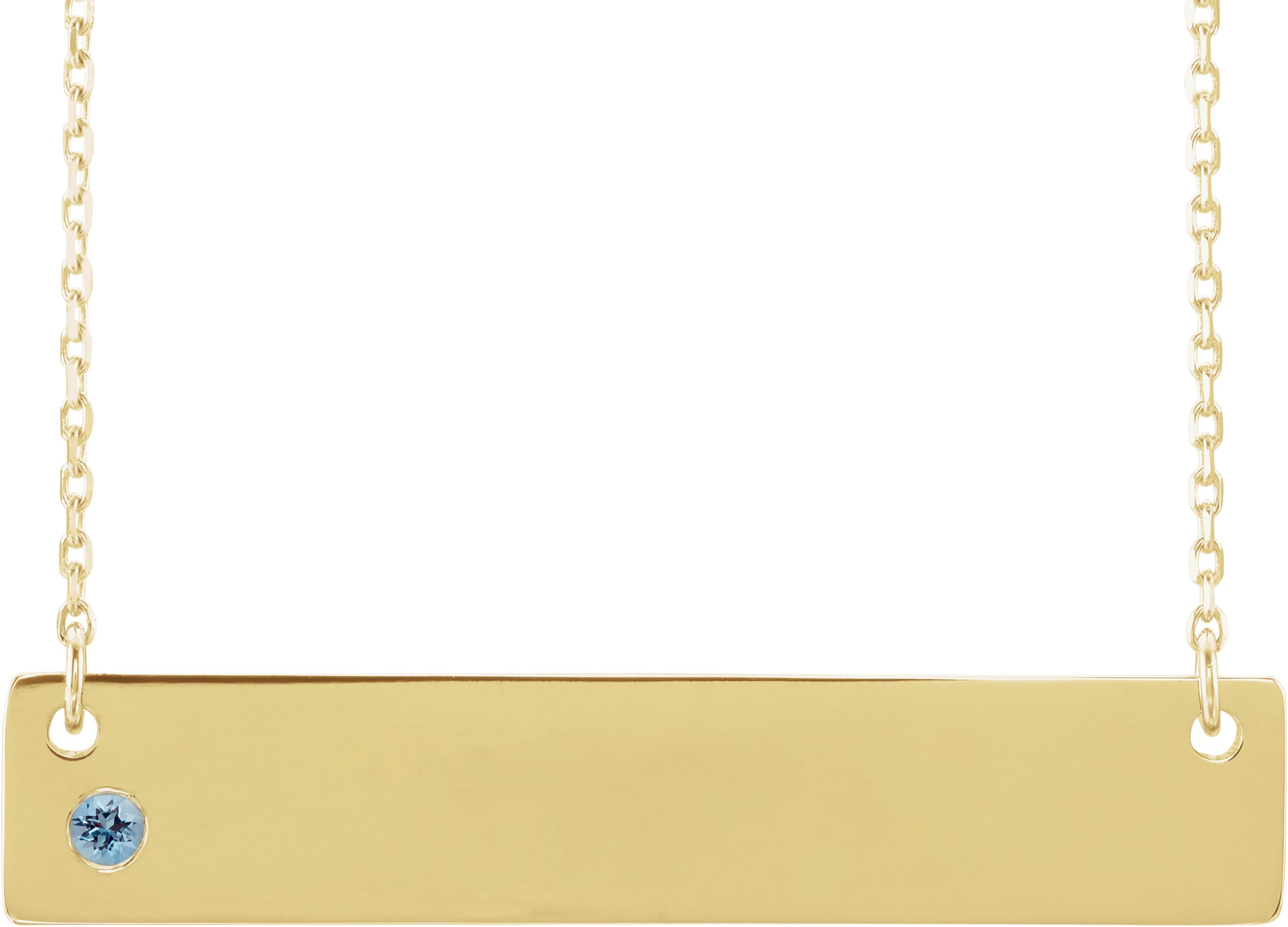 14K Yellow Aquamarine Family Bar 16 18 inch Necklace