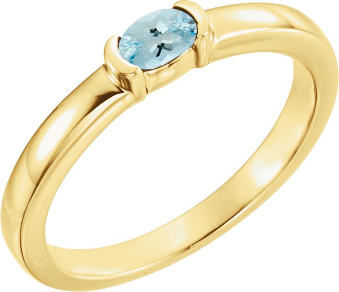 14K Yellow Aquamarine Oval Stackable Family Ring