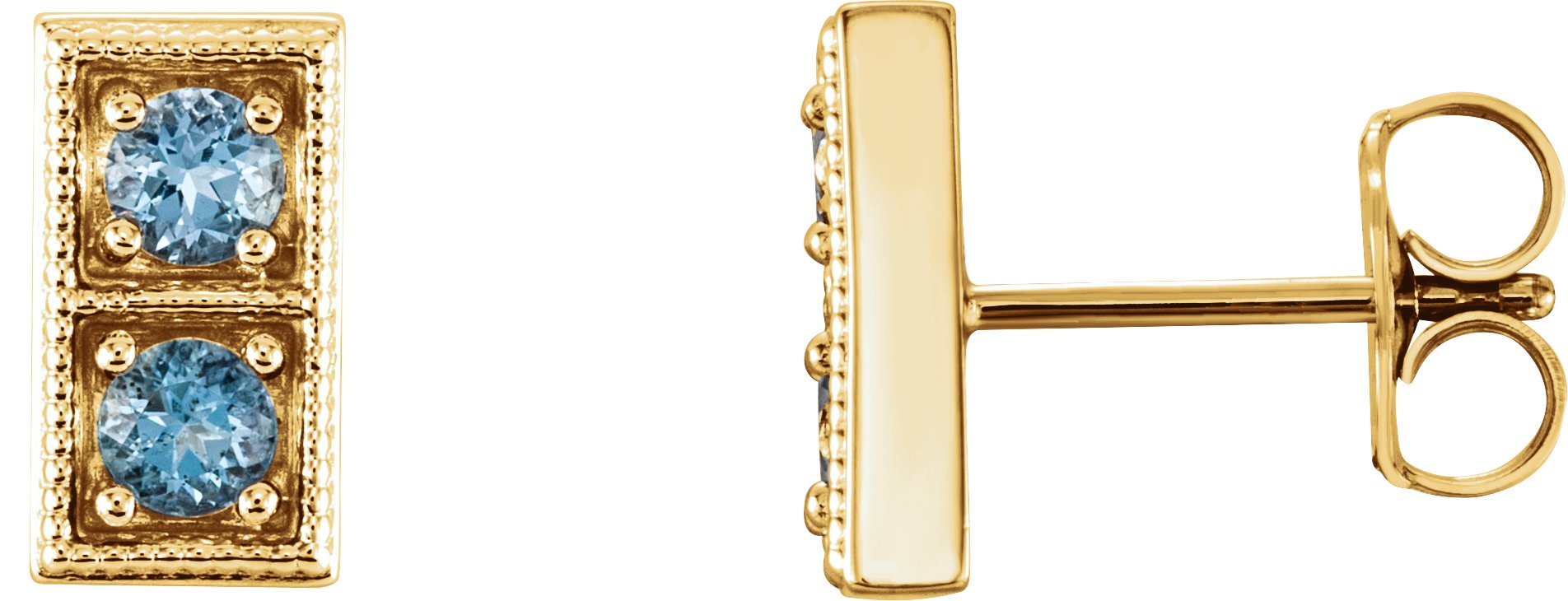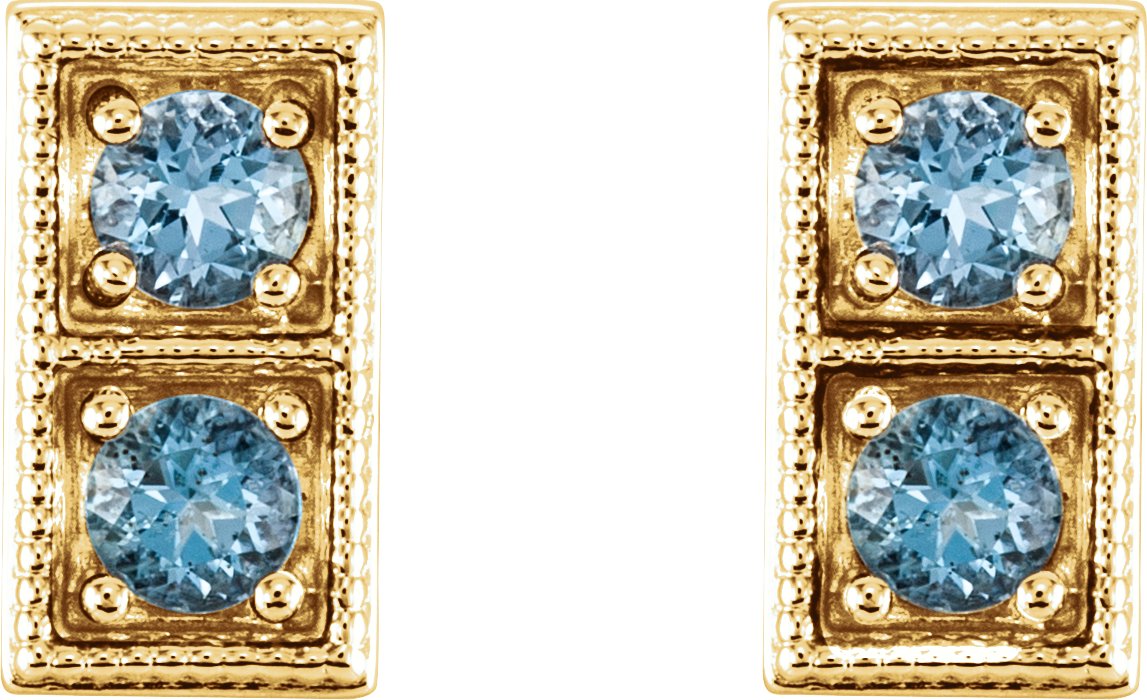 14K Yellow Aquamarine Two Stone Earrings
