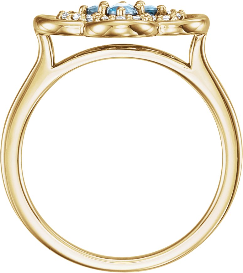 14K Yellow Aquamarine and .10 CTW Diamond Ring