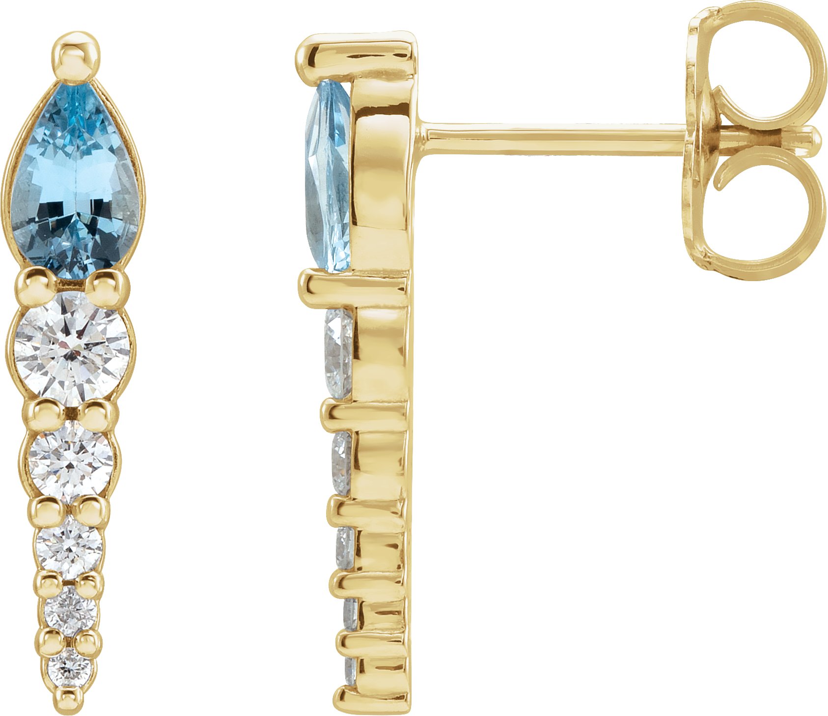 14K Yellow Aquamarine & 1/4 CTW Diamond Earrings
