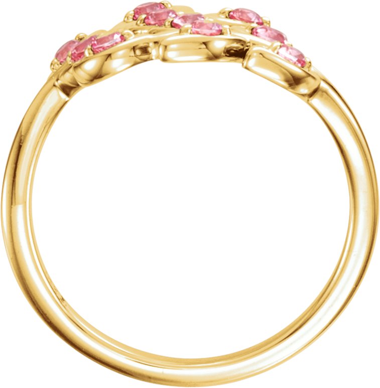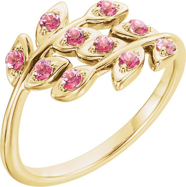14K Yellow Baby Pink Topaz Leaf Design Ring
