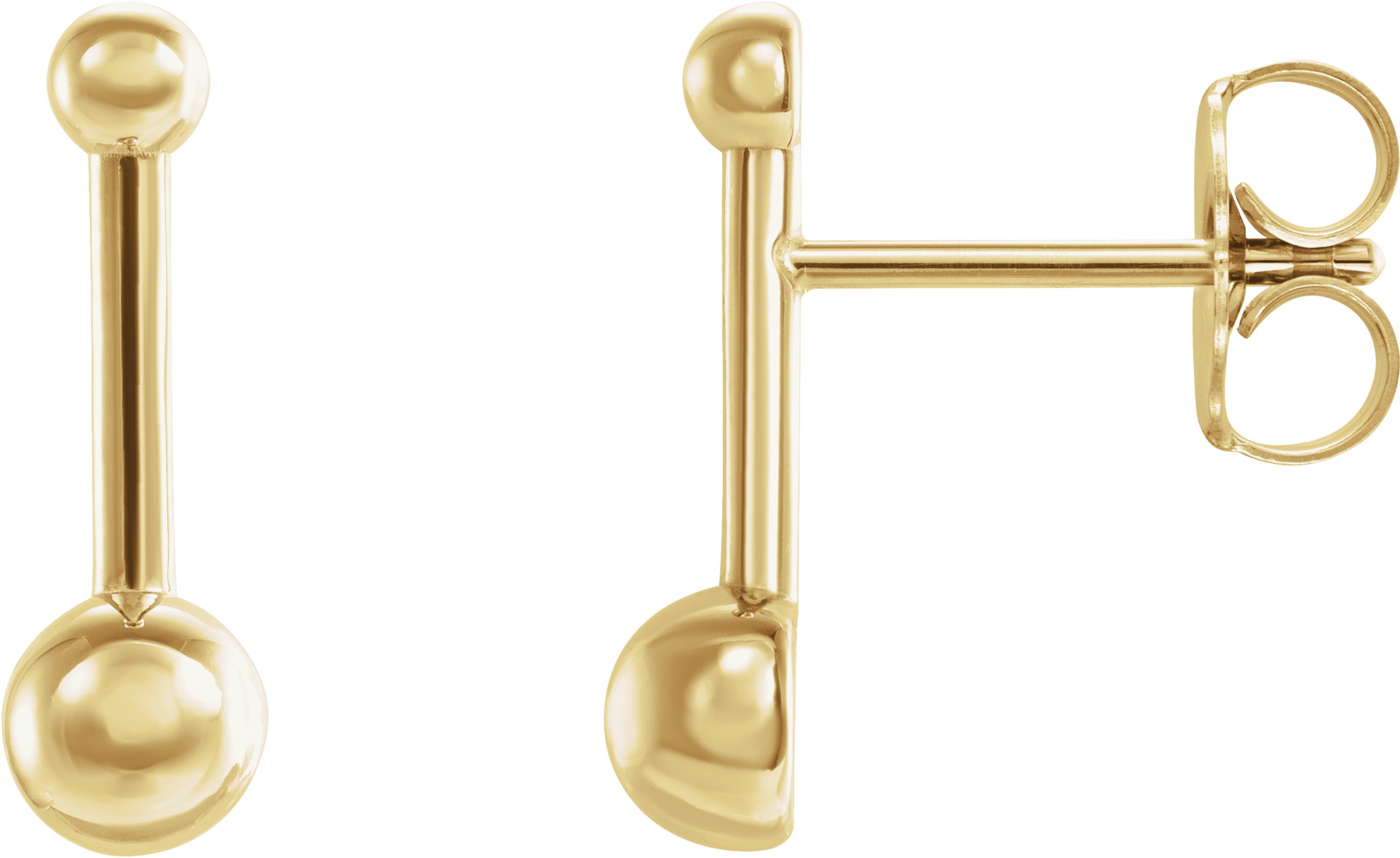 14K Yellow Bar & Ball Earrings
