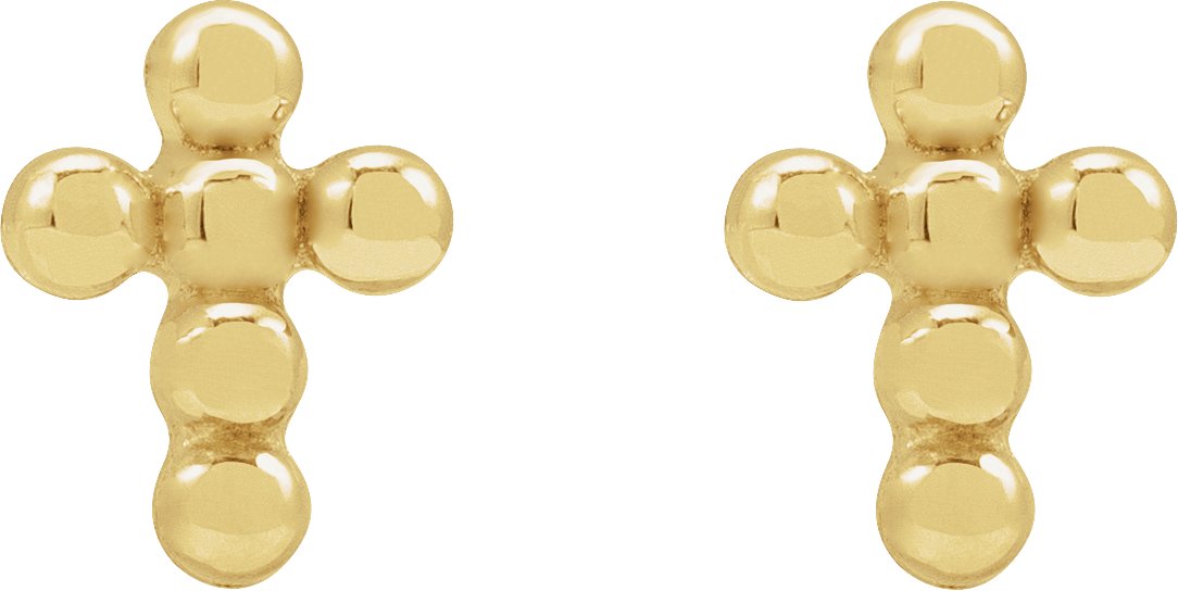 14K Yellow Beaded Cross Stud Earrings