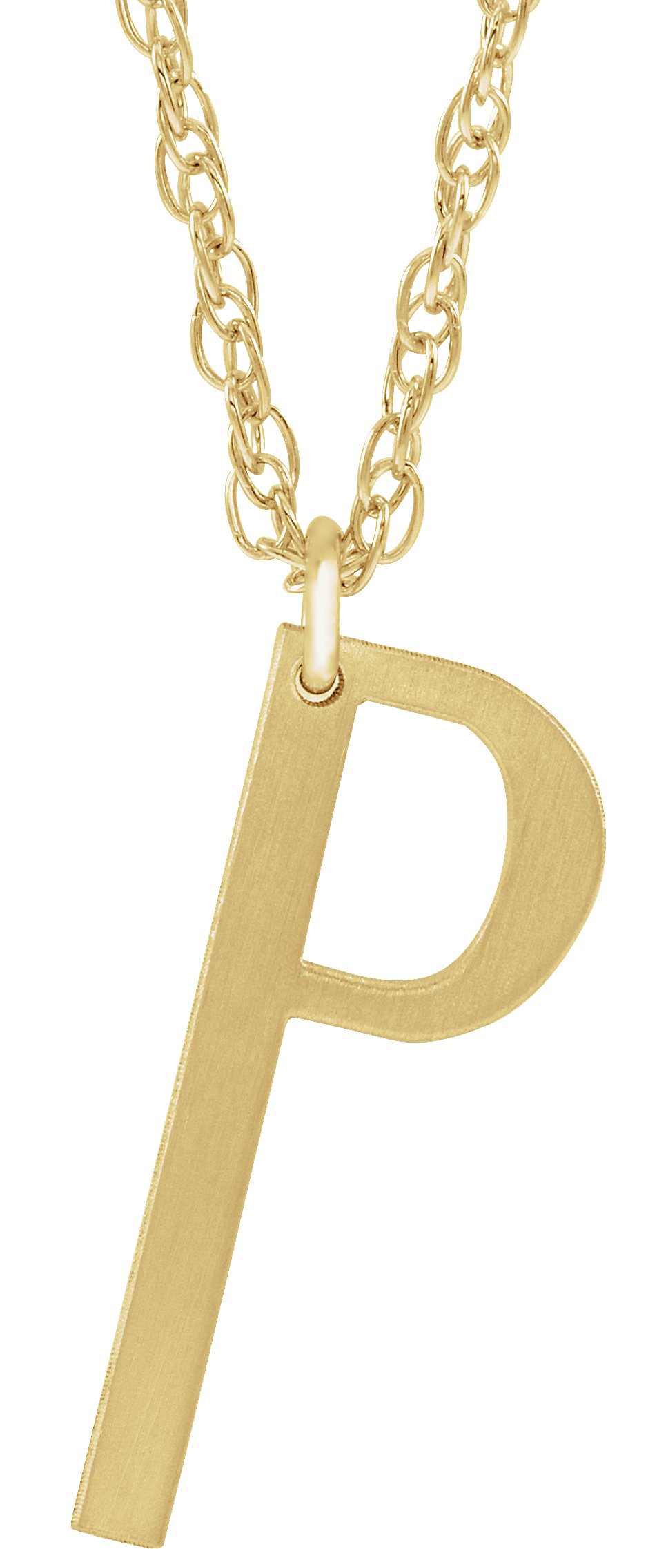14K Yellow Block Initial P 16 18" Necklace with Brush Finish Ref. 16047243