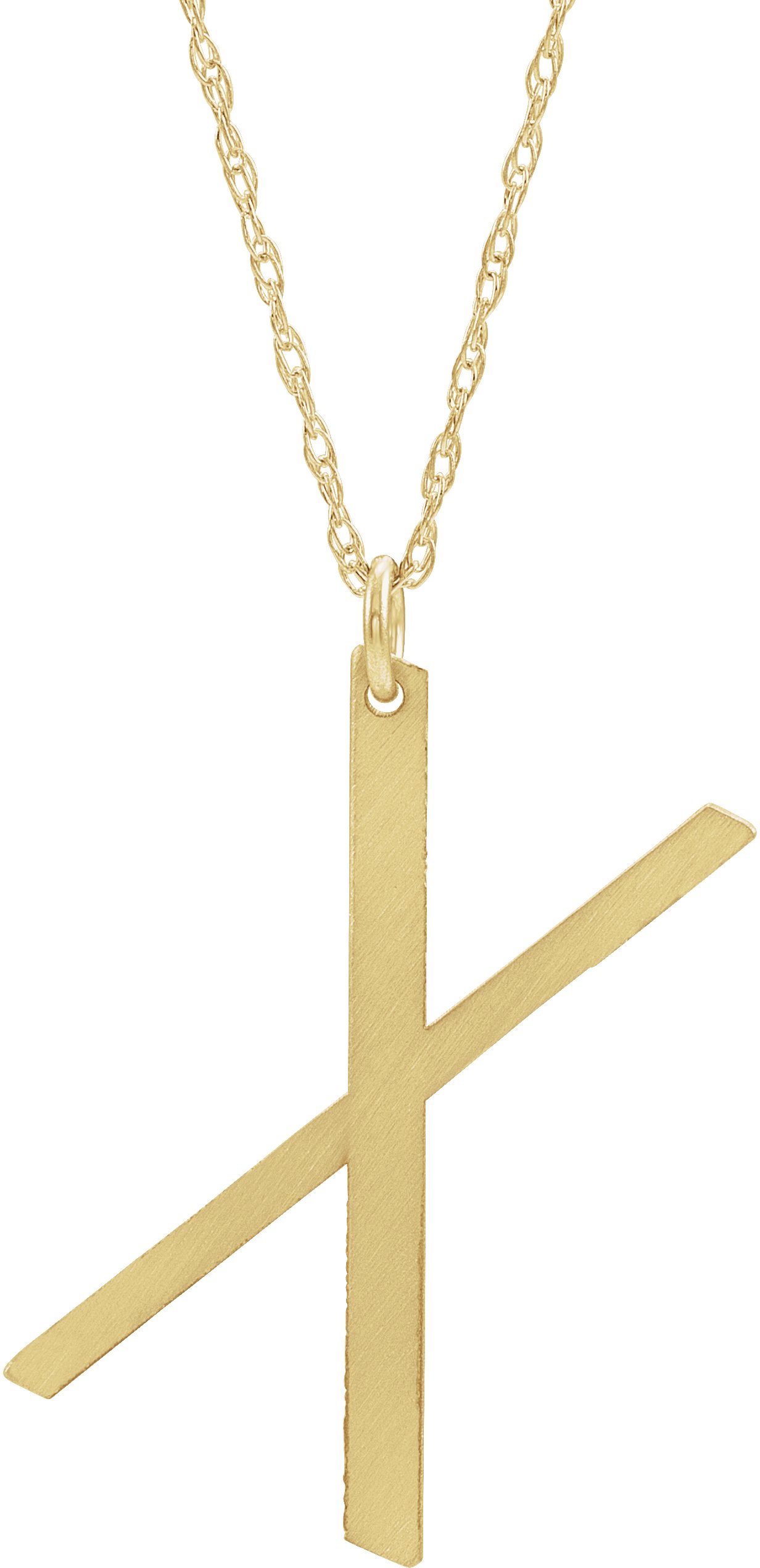 14K Yellow Block Initial X 16 18" Necklace with Brush Finish Ref. 16047251