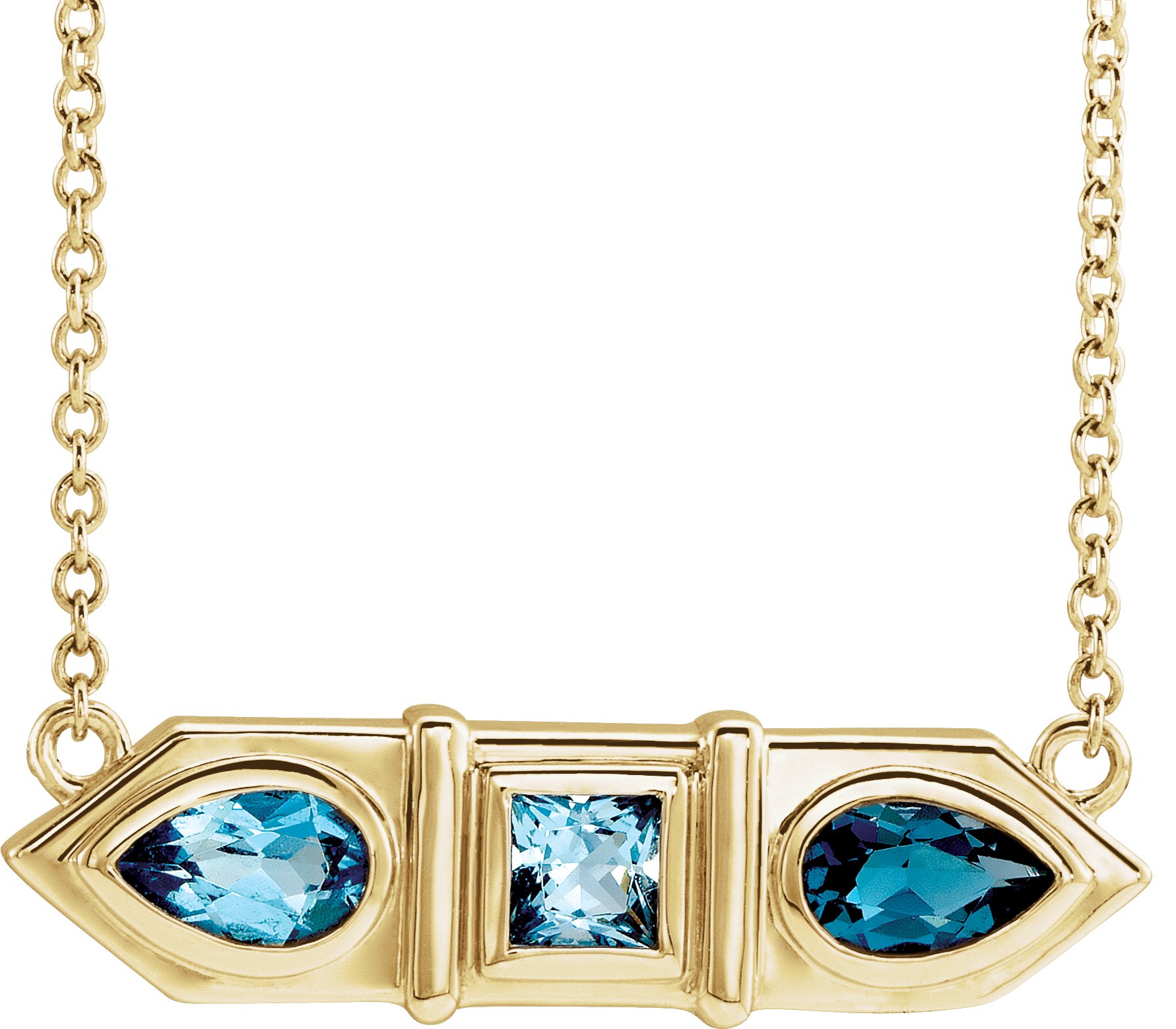 Finished State: PolishedDescription: Genuine Blue Multi-Gemstone Geometric Bar Necklace