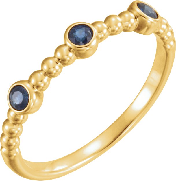 14K Yellow Blue Sapphire Beaded Ring