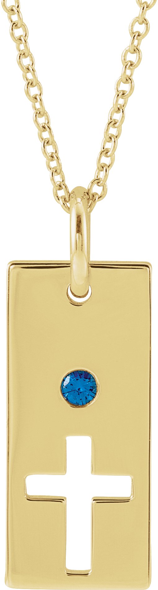 14K Yellow Blue Sapphire Cross Bar 16 18" Necklace Ref. 17077749