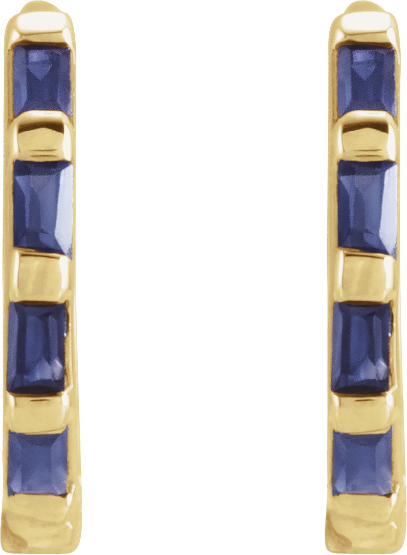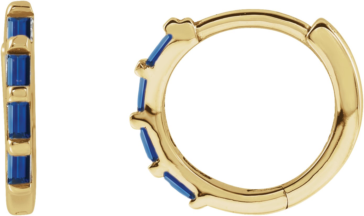 14K Yellow Blue Sapphire Hinged Hoop Earrings
