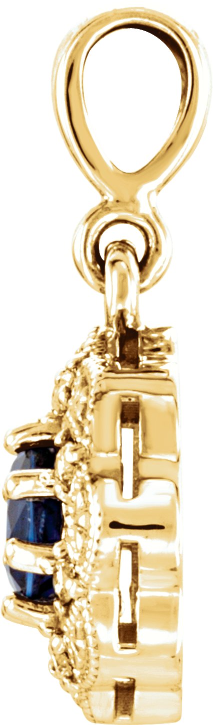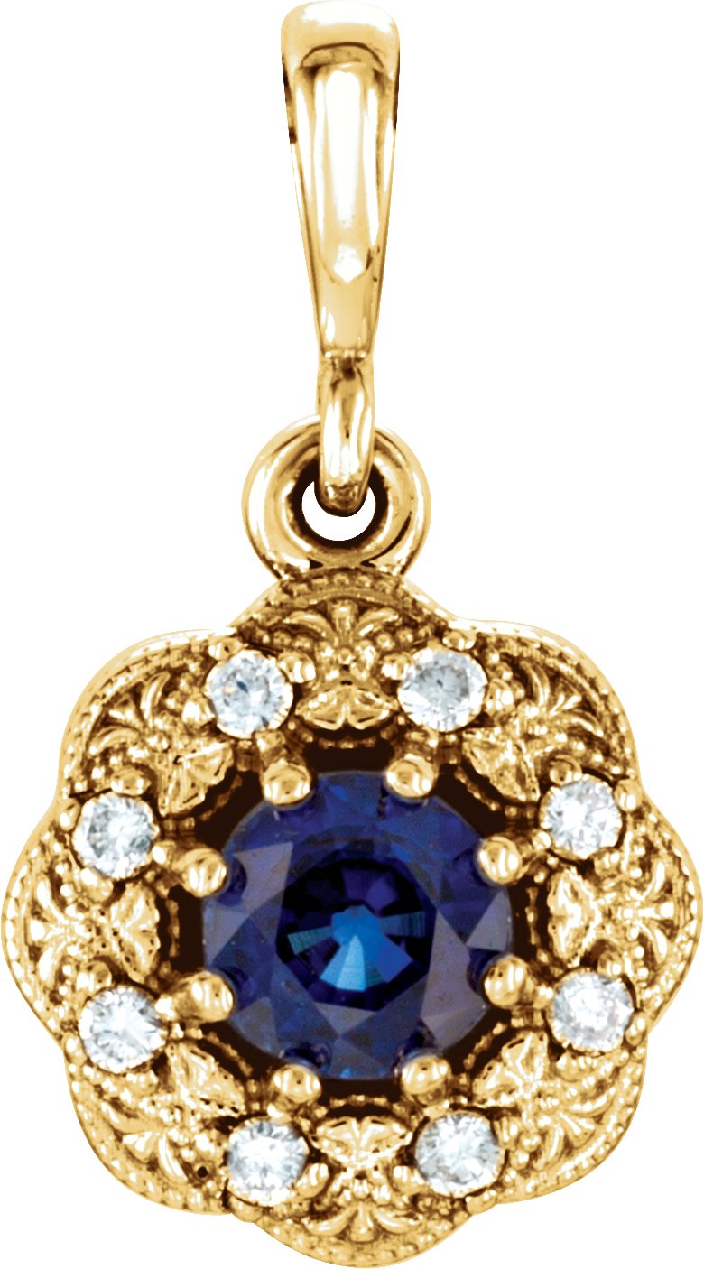 14K Yellow Blue Sapphire and .06CTW Diamond Pendant