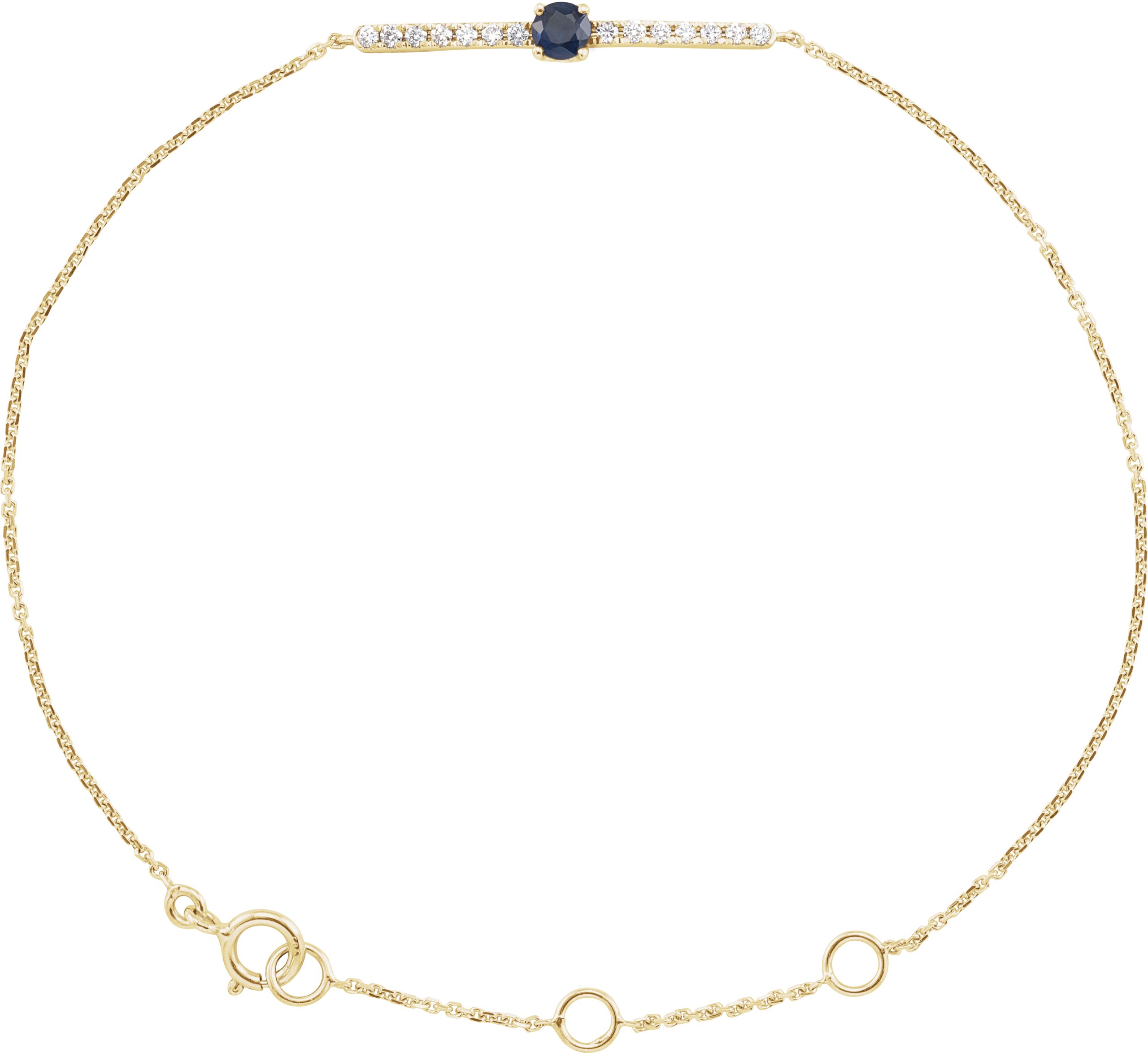 14K Yellow Blue Sapphire & .07 CTW Diamond Bar 5-7" Bracelet