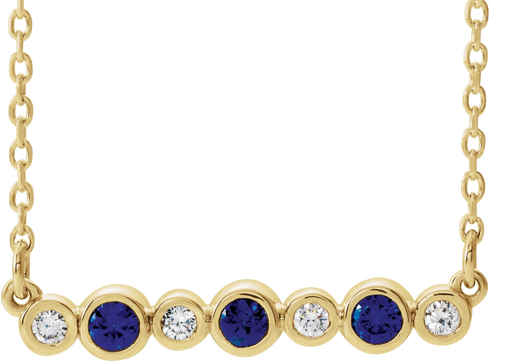 14K Yellow Blue Sapphire & .08 CTW Diamond Bezel Set Bar 16 18" Necklace Ref. 14204942
