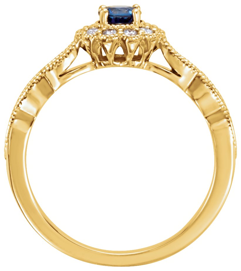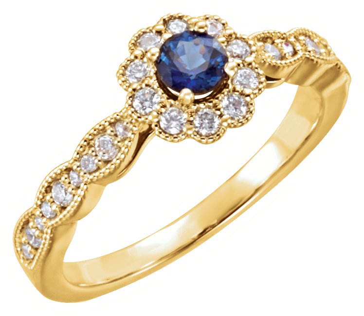 14K Yellow Blue Sapphire and .33 CTW Diamond Ring