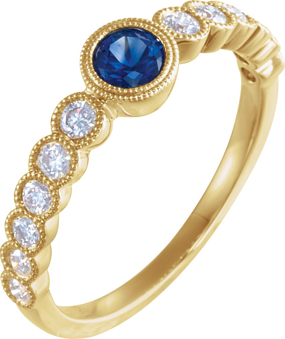 14K Yellow Blue Sapphire and .50 CTW Diamond Ring