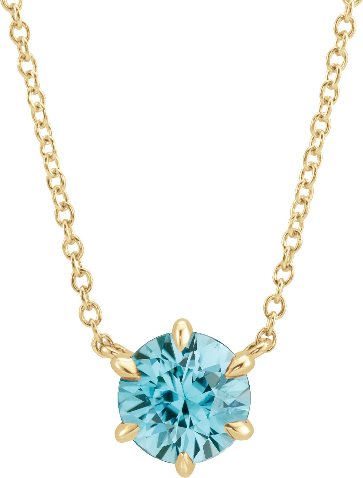 14K Yellow Blue Zircon Solitaire 16 inch Necklace