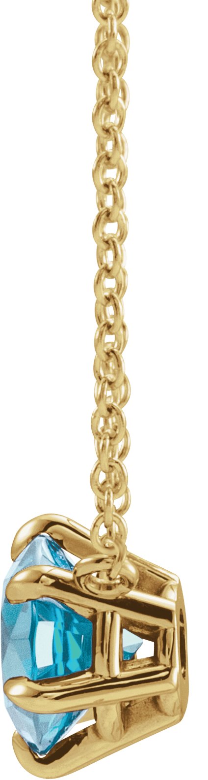 14K Yellow Blue Zircon Solitaire 18 inch Necklace