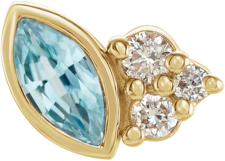 14K Yellow Blue Zircon and .03 CTW Diamond Left Earring
