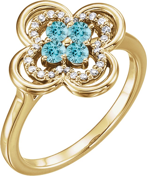14K Yellow Blue Zircon and .10 CTW Diamond Ring