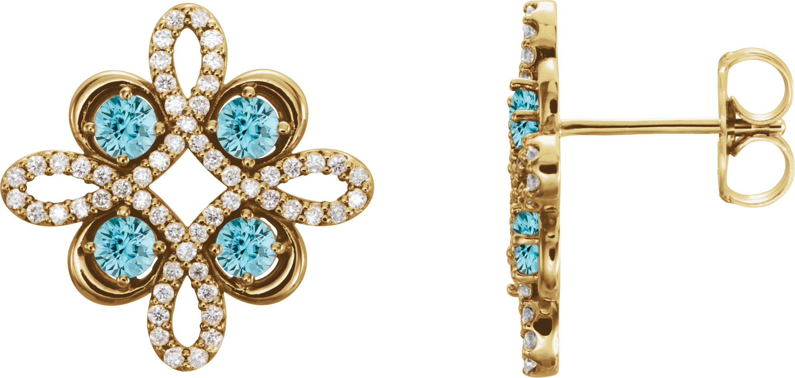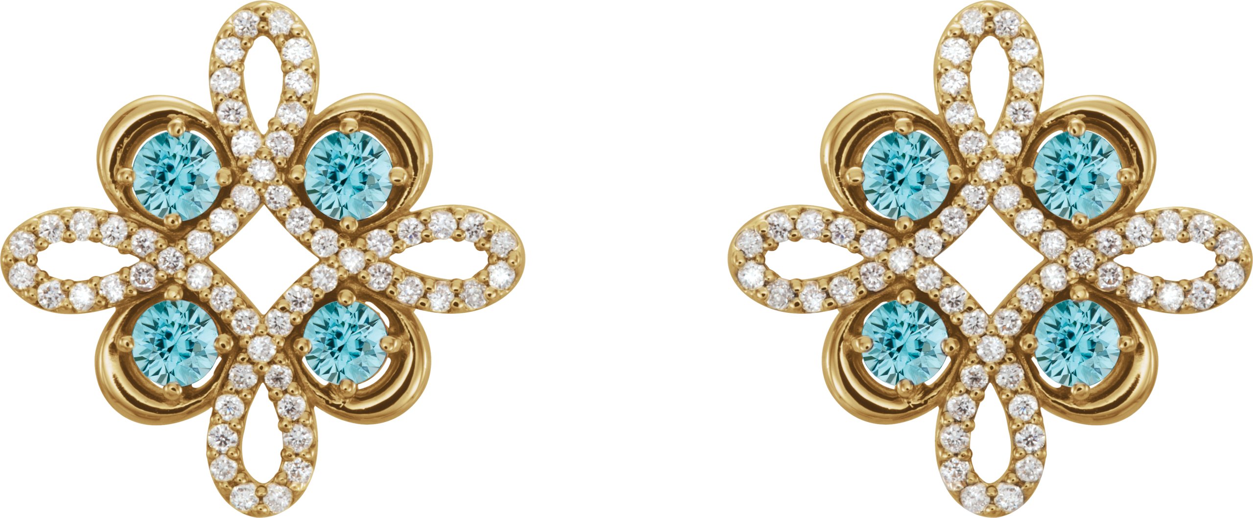 14K Yellow Blue Zircon and .25 CTW Diamond Earrings